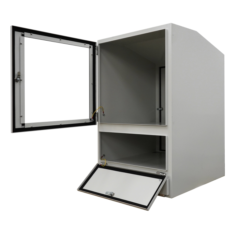 De 900-serie computerkast voor industriële pc's is een alles-in-één IP54 compacte PC-werkplek behuizing, ontworpen voor stofdichte bescherming in industriële omgevingen en productiehallen. Deze compacte computerkast is vervaardigd uit gepoedercoat zachtstaal en biedt plaats aan een breed scala aan conventionele desktop-pc's en beeldschermen (tot 21", zowel CRT als flatscreen).