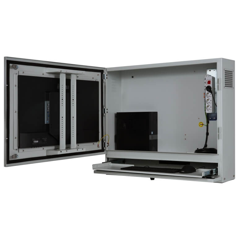 Bescherm pc-apparatuur en verbeter de productiviteit van medewerkers in industriële omgevingen met een industriële computerkast werkstation. De IP54-behuizing beschermt tegen industrieel stof, vuil en stoten, terwijl de gefilterde luchtstroom oververhitting voorkomt. Hierdoor kunnen operators efficiënt multitasken en de schermruimte op de werkvloer maximaal benutten met grootformaat 32" computerwerkstations.