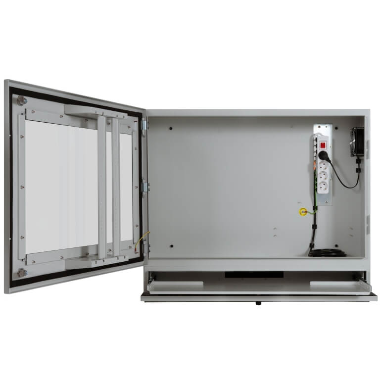 | Behuizing Van Poedergecoat Zachtstaal, Geclassificeerd Tot IP54 | Beschermt IT-apparatuur tegen vuil afkomstig van zware machines, evenals tegen oliën, residuen en industriële stoten. |