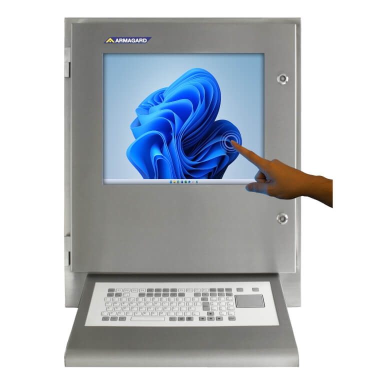 De roestvrijstalen constructie biedt bescherming tegen hogedrukreiniging, stof, olie, vet en fysieke impact. Het 17" RVS touchscreen voor de voedingsindustrie is volledig waterdicht en bestand tegen rondzwevend vuil.
