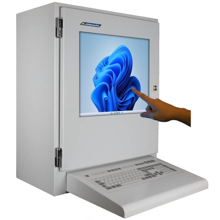 De Armagard 750-serie is een alles-in-één industrieel touch monitor werkstation ontworpen om desktop- of tower-PC’s te beschermen in zware industriële omgevingen. De PENC-750 is uitgerust met een 17-inch vijf-draads resistief touchscreen.