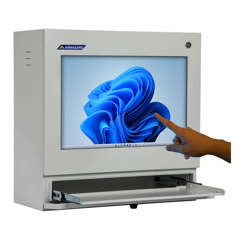 Creëer de meest optimale opstelling voor uw behoeften. Kies uit wand-, vloer- of werkbladmontage, en optioneel een toetsenbordplateau, toetsenbordlade of geïntegreerd IP54-toetsenbord met touchpad. De industriële alles-in-één PC-touchscreen is uitgerust met twee sleutelsloten om ongeautoriseerde toegang te voorkomen, zodat u zich geen zorgen hoeft te maken over de beveiliging van uw investering, op welke locatie deze zich ook bevindt.