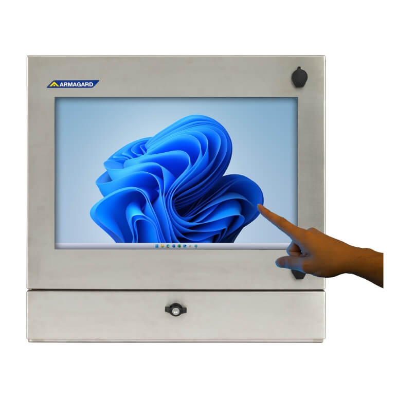 De waterdichte IP65 touchscreen behuizing is voorzien van twee sleutelsloten om ongeautoriseerde toegang te voorkomen. Kies voor wand-, staande of werkbladmontage om de meest efficiënte werkplek voor uw medewerkers te creëren. Verkrijgbaar met een optioneel toetsenbordplankje, afsluitbare toetsenbordlade of een geïntegreerd IP65-toetsenbord met touchpad.