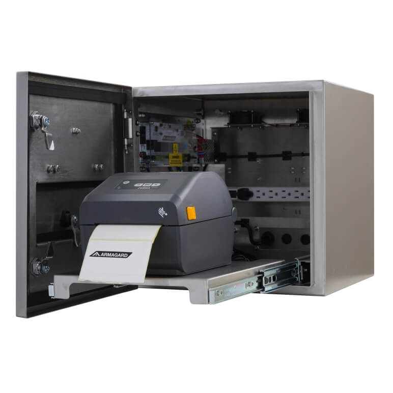 De compacte thermische desktopprinter behuizing is geschikt voor Zebra ZD, SATO, TSC, Cab MACH 1/2 en andere industriële desktopprinters, en biedt maximale flexibiliteit (controleer de afmetingen bij uw accountmanager). Met meer dan 30 jaar ervaring ontwerpt en produceert Armagard industriële printerbehuizingen voor bedrijven van elke omvang, waarmee betrouwbare printerprestaties worden gegarandeerd, zelfs in de zwaarste omgevingen.